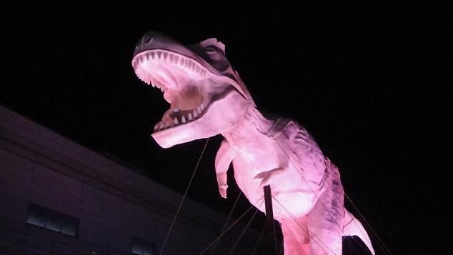 | 福井駅前の紙製ティラノ。 | |