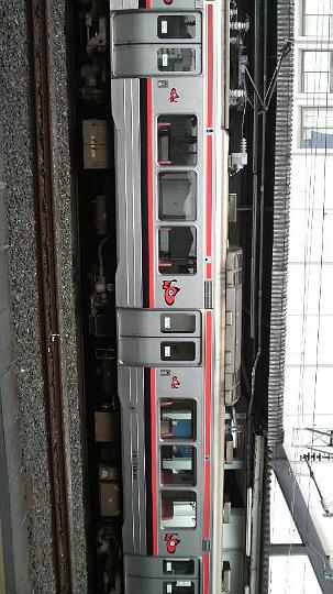 会津若松駅の赤べこシール列車。